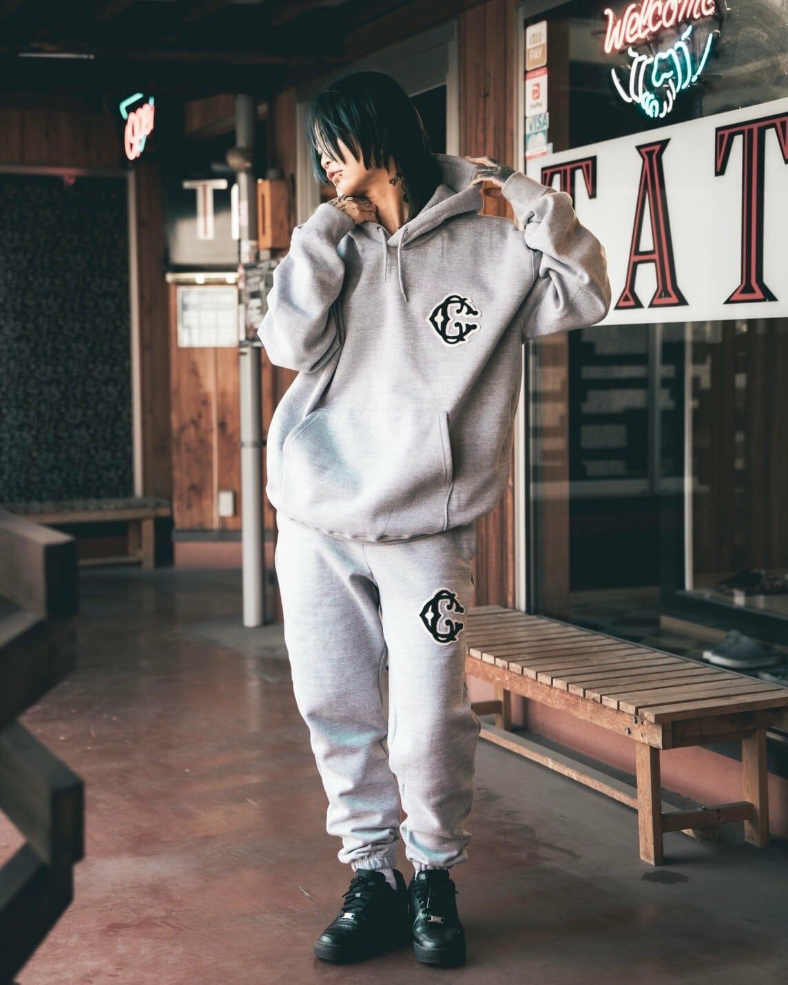 Classic【C】Logo wappen Sweat pants(Gray)