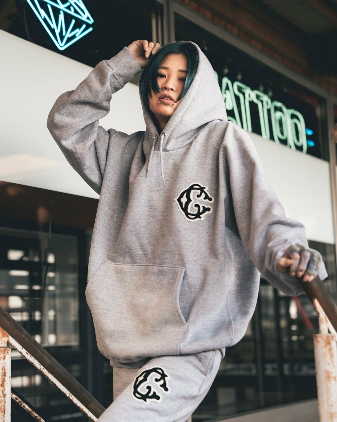Classic【C】Logo wappen Hoodie (Gray)