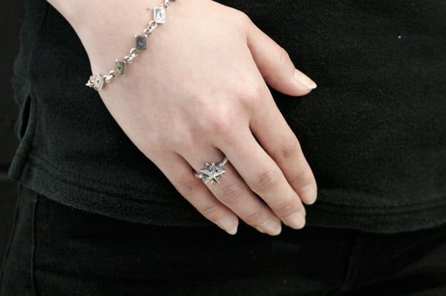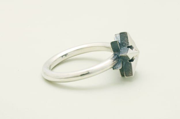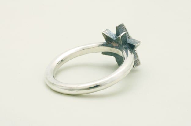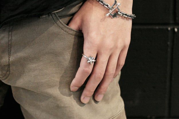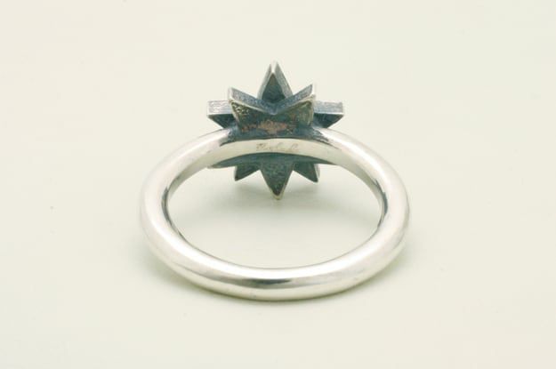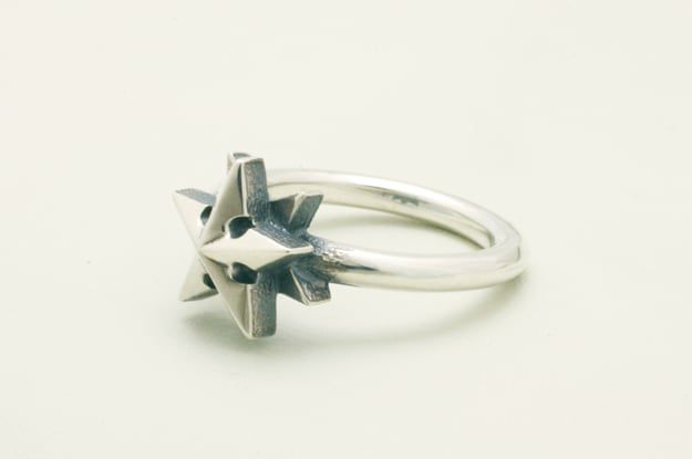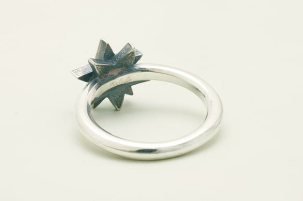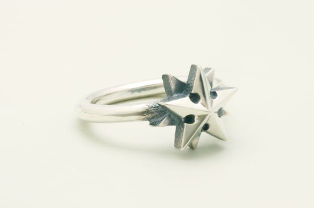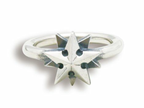 北極星をテーマに、タトゥーモチーフの『ノーティカルスター』とコンパス(方位磁石)をアレンジした星モチーフのリング。