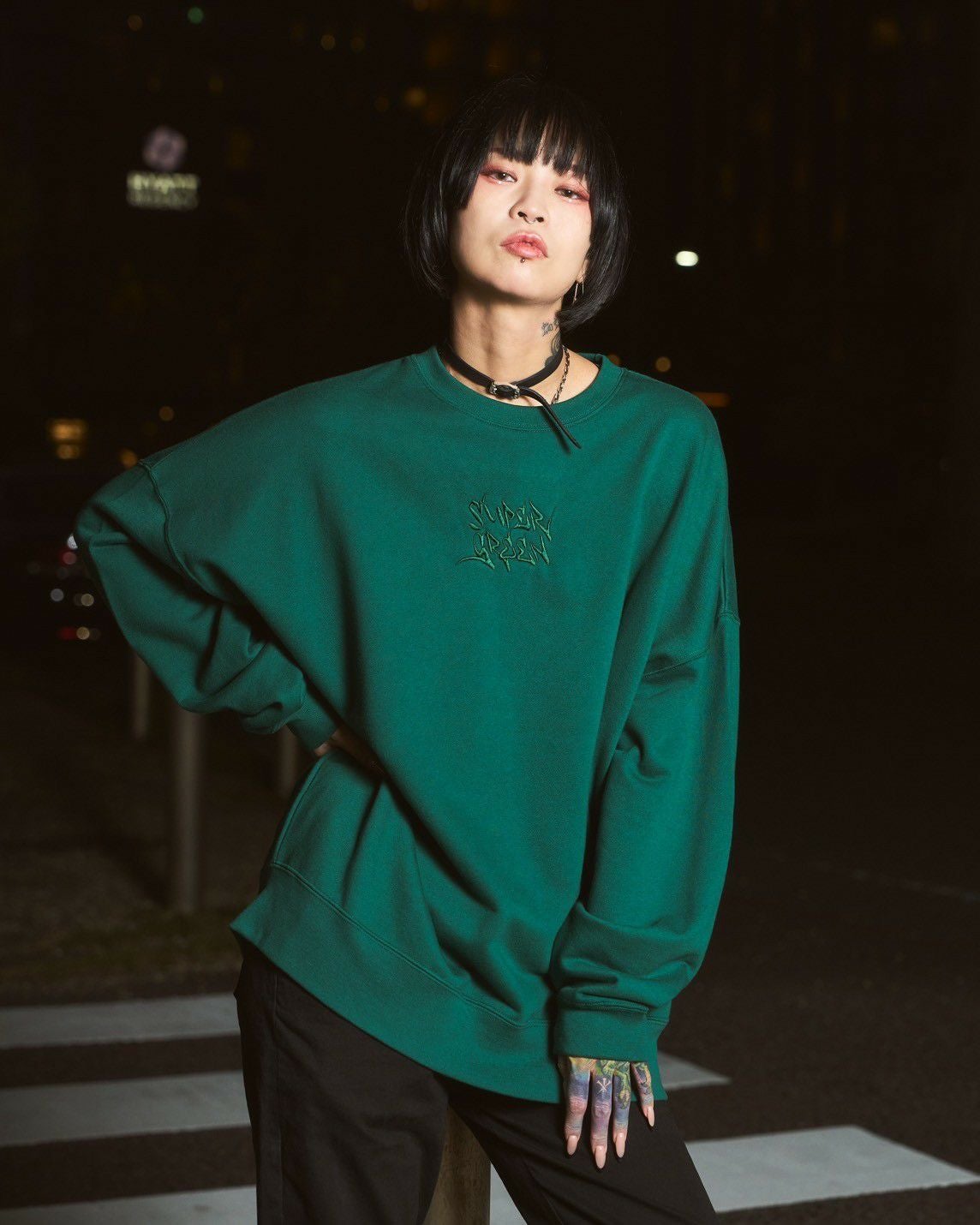 SG Letter Big sweat shirt(Green)