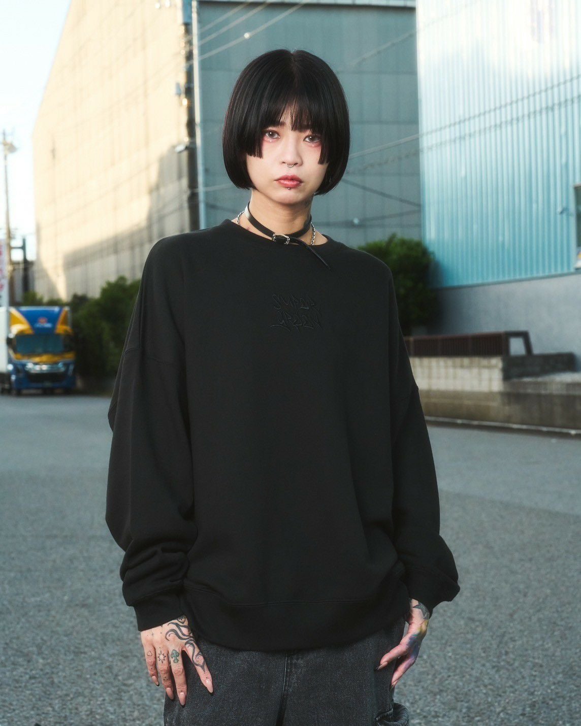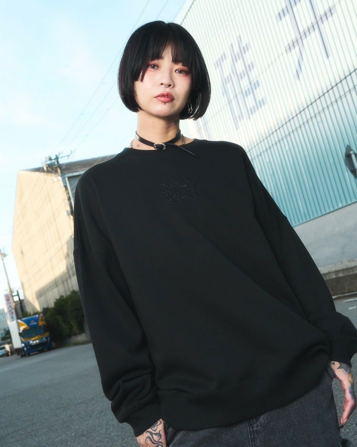 SG Letter Big sweat shirt(Black)